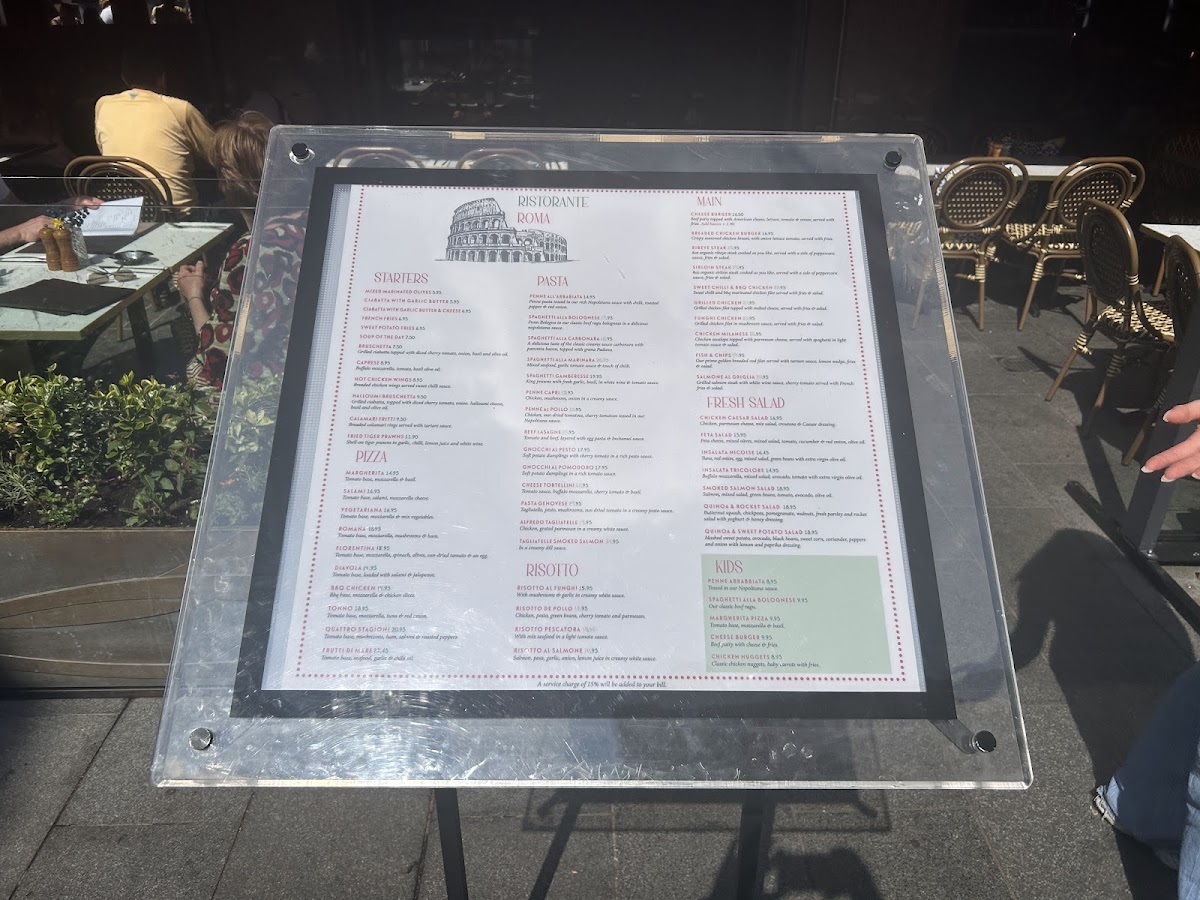 Welcome to RISTORANTE ROMA, a delightful gastronomic haven nestled in the heart of London at 1 Irving St. This charming eatery presents a diverse menu, skillfully blending rustic Italian flavors with contemporary touches. Indulge in the savory Cheese Burger priced at £16.50, or savor the breaded crunch of the Chicken Milanese for £16.95. Carnivores will love the rich taste of the Ribeye and Sirloin Steaks, perfectly grilled to your liking.
